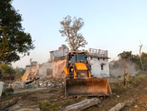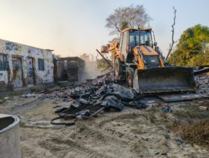 तड़के भारी पुलिस बल व JCB मशीनों के साथ मौके पर पहुँचकर अवैध निर्माणों को ध्वस्त किया गया।